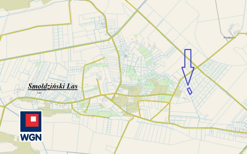 Nieruchomość gruntowa w kształcie kwadratu o wymiarach ok. 38 m na ok. 44 m. Dojazd do działki drogą gminną nr 293. Media - energia elektryczna w drodze gminnej przy granicy działki.